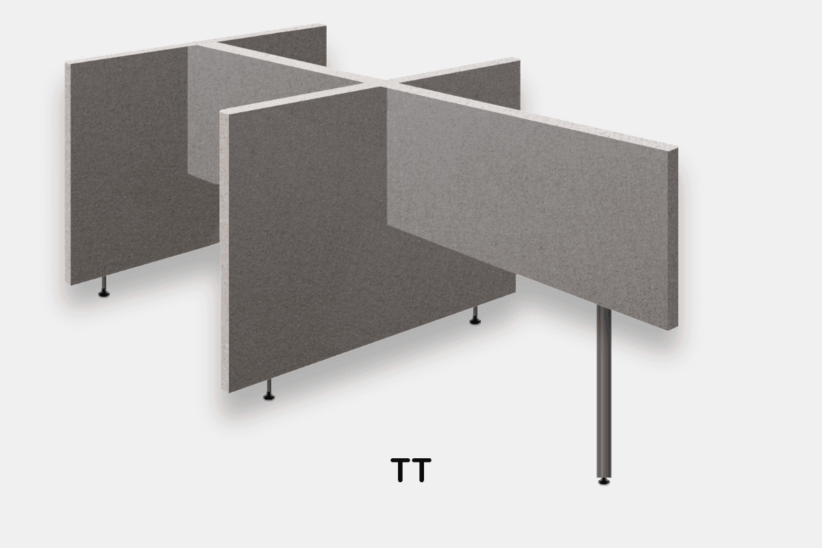 Next to the TT-form there are four standard set-ups available in various sizes. The screens are made of 40 mm birch plywood, filled with recycled cotton and finished with the durable fabric MoVe. This makes it an environmentally friendly choice.