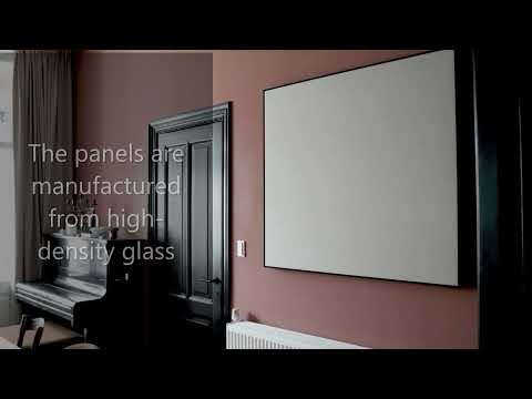 The EASYultra acoustic wall panels combine high acoustic values with a firm panel. The panels are produced using glass wool with a high density. The visible side is finished with a soft and impact resistant glass fibre top foil. The EASYultra acoustic wall panels are framed with an aluminium profile of 50 mm thick. The panels are available in thirteen colours.