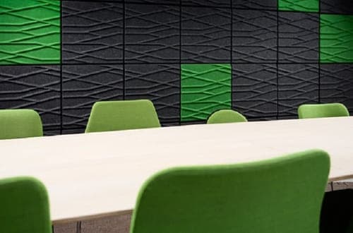 The Soundwave Village is a lightweight acoustic panel. The Soundwave Village ensures proper absorption of higher frequencies (as of 500Hz). It is possible to additionally fill the panel so lower frequencies are also well absorbed.